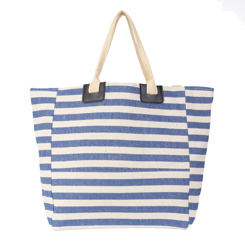 Le cabas Isatis en coton à rayures offre élégance et praticité avec ses couleurs variées et ses anses robustes. Idéal pour les sorties estivales.