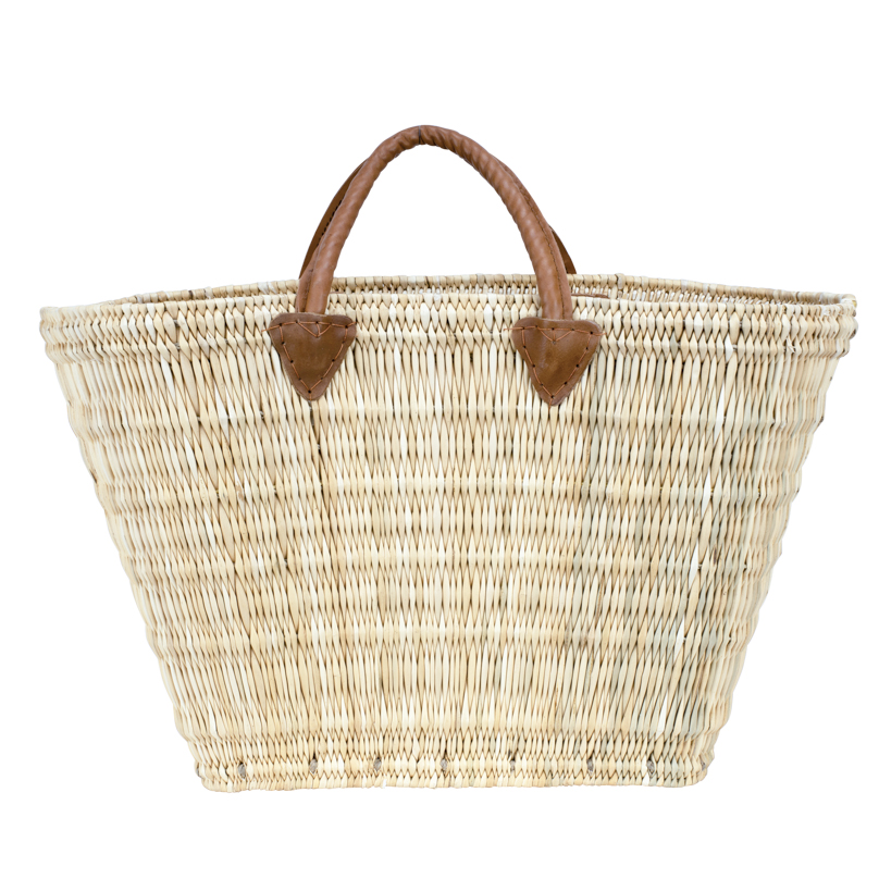 Panier en jonc Atika – charme naturel et robustesse avec tressage serré et poignées en cuir. Idéal pour toutes vos sorties.