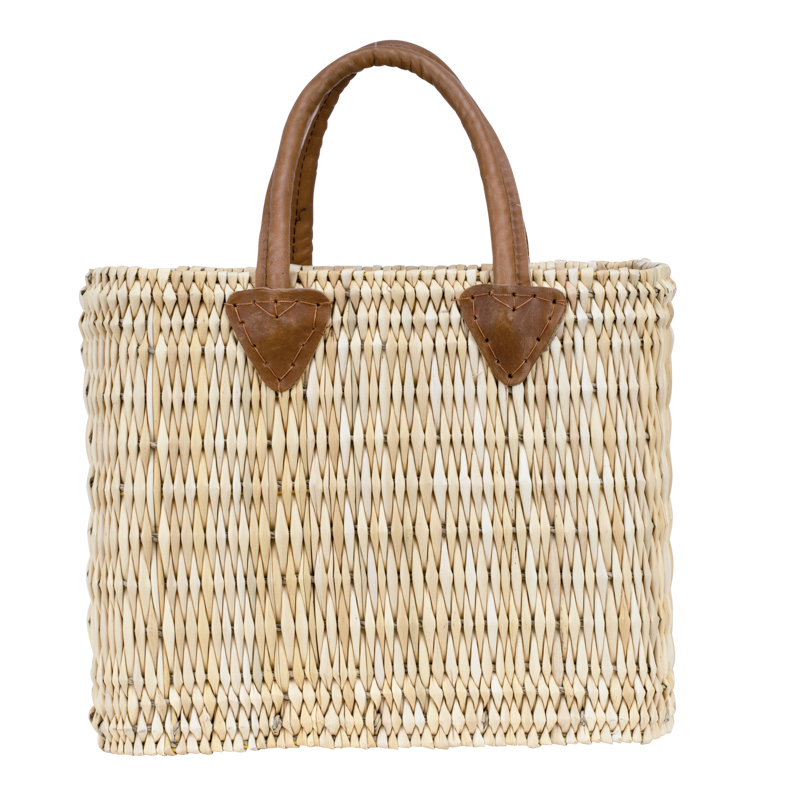 Découvrez le panier en jonc Mikki, chic et pratique avec poignées en cuir. Idéal pour courses et sorties plage.