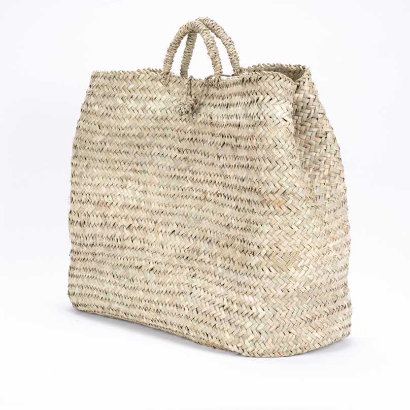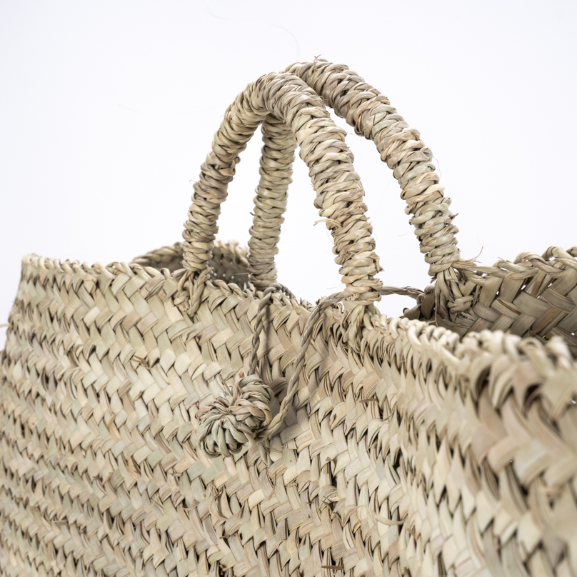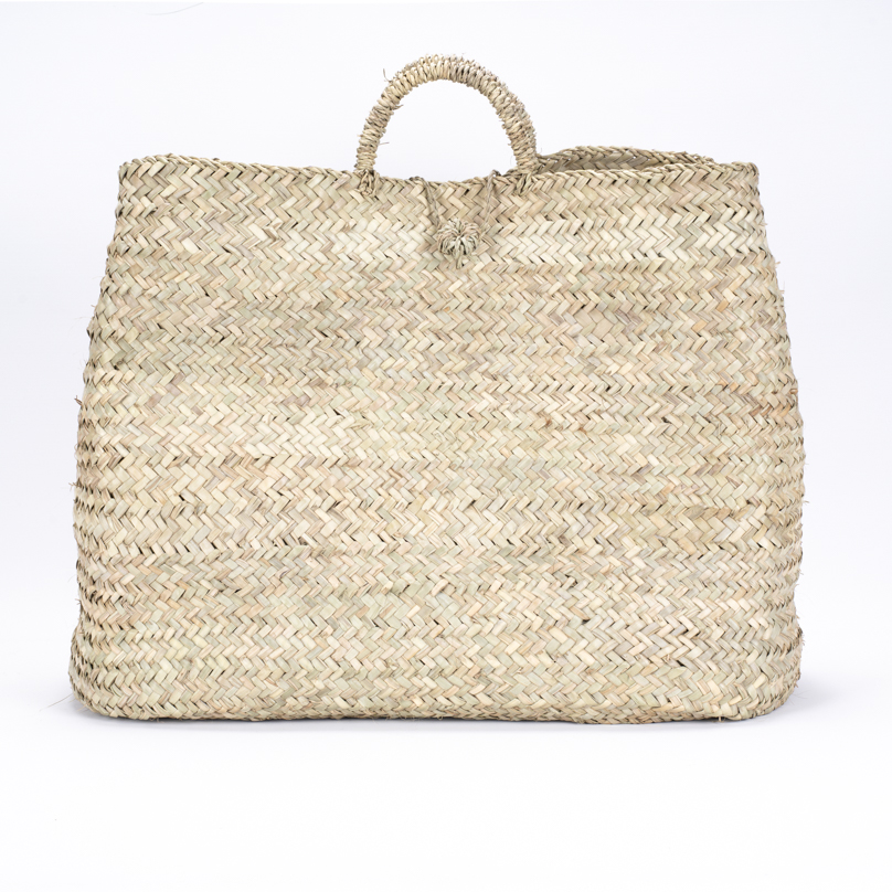Panier Mellal en palme naturelle, tressé à la main. Style authentique et épuré, parfait pour un usage quotidien ou un accessoire de mode.