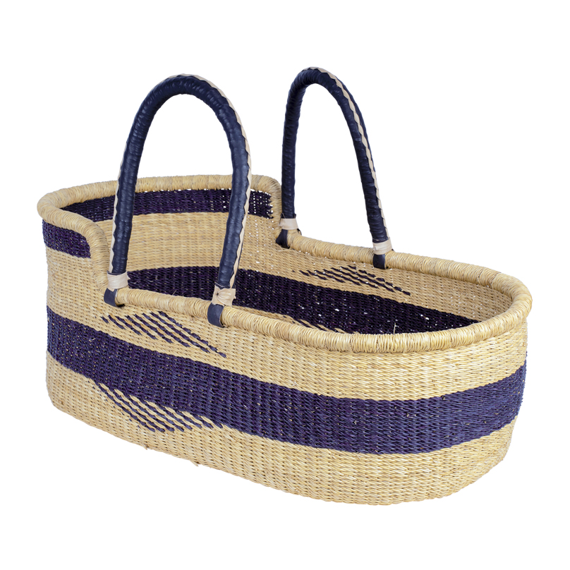 Découvrez le couffin Mtoto, un couffin artisanal du Ghana fabriqué en herbe éléphant, offrant confort et style pour votre bébé.